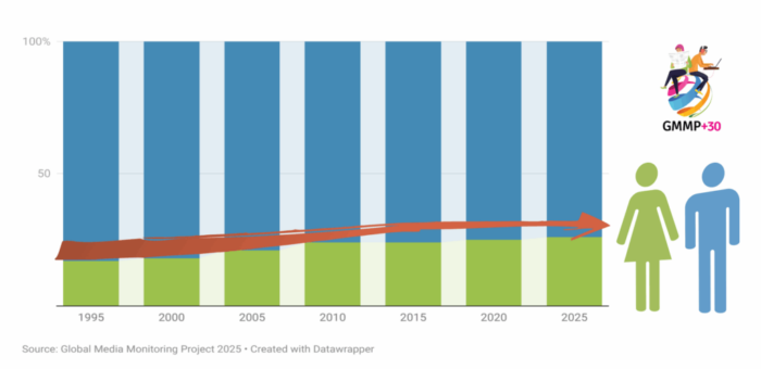 Il messaggio del GMMP nel 2025, trent’anni dopo Pechino, è che l’industria dell’informazione globale ha raggiunto un bivio nel suo progresso verso la parità di genere. I dati non dimostrano ancora il successo dell’attuazione delle raccomandazioni sui media contenute nel programma di Pechino. Gli obiettivi strategici J.1 (aumentare la partecipazione e l’accesso delle donne all’espressione e al processo decisionale nei e attraverso i media e le nuove tecnologie di comunicazione) e J.2 (promuovere una rappresentazione equilibrata e non stereotipata delle donne nei media) rimangono incompiuti.