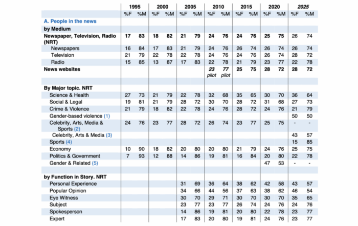 Nel complesso, il ritmo lento dei cambiamenti tra il 2010 e il 2025 suggerisce che si è verificata una certa trasformazione strutturale nelle dimensioni misurate dal GMMP, ma che i progressi hanno raggiunto un punto morto. Nelle condizioni attuali, è improbabile che si verifichino cambiamenti significativi verso la parità di genere.